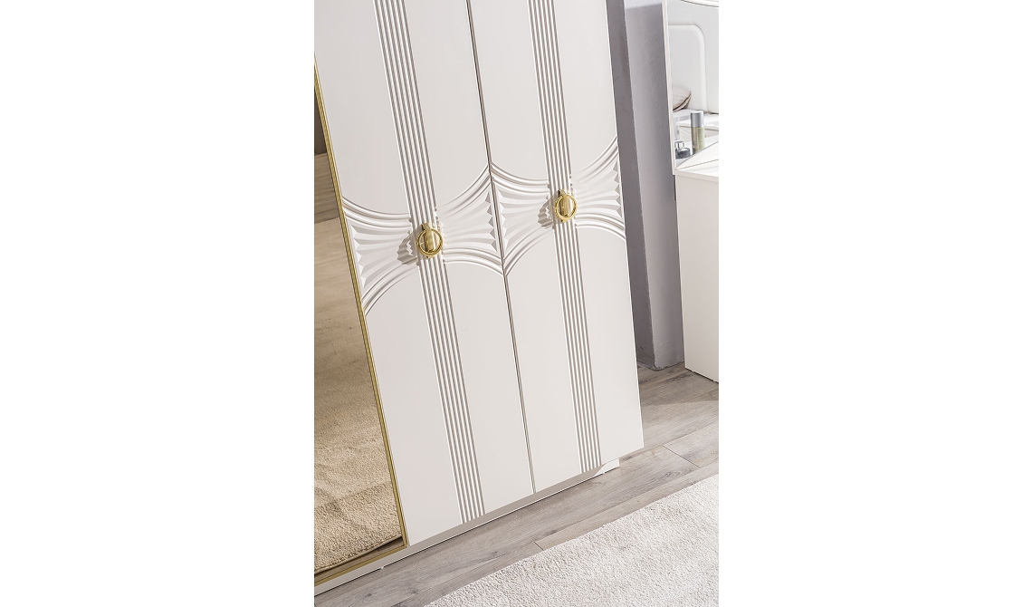 Dora Gardırop, modern ve fonksiyonel tasarımıyla yatak odasında düzenli bir kullanım sunar. Geniş iç hacmi sayesinde eşyalarınızı pratik ve konforlu şekilde saklamanıza yardımcı olur.