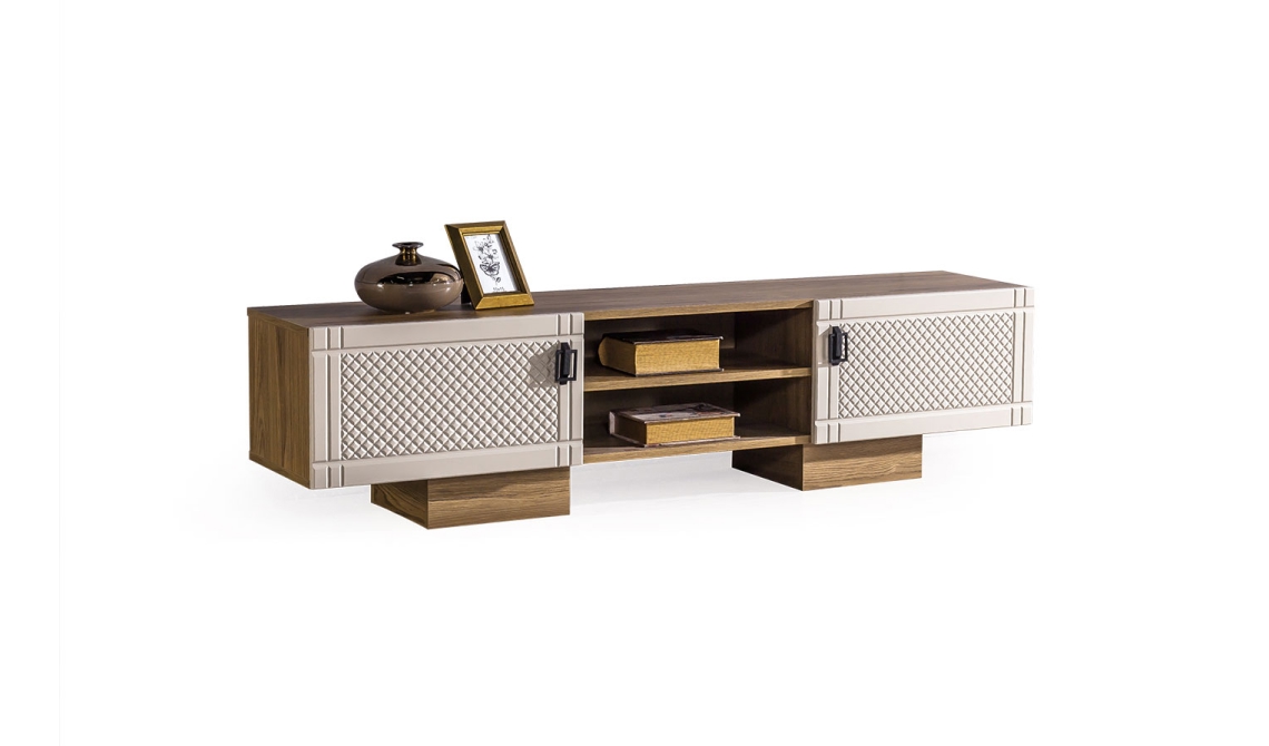 Luna TV Ünitesi, zarif tasarımı ve modern çizgileriyle yaşam alanına şıklık kazandırır. Kullanışlı raf ve bölmeleri sayesinde elektronik eşyalarınızı düzenli ve estetik şekilde sergilemenizi sağlar.