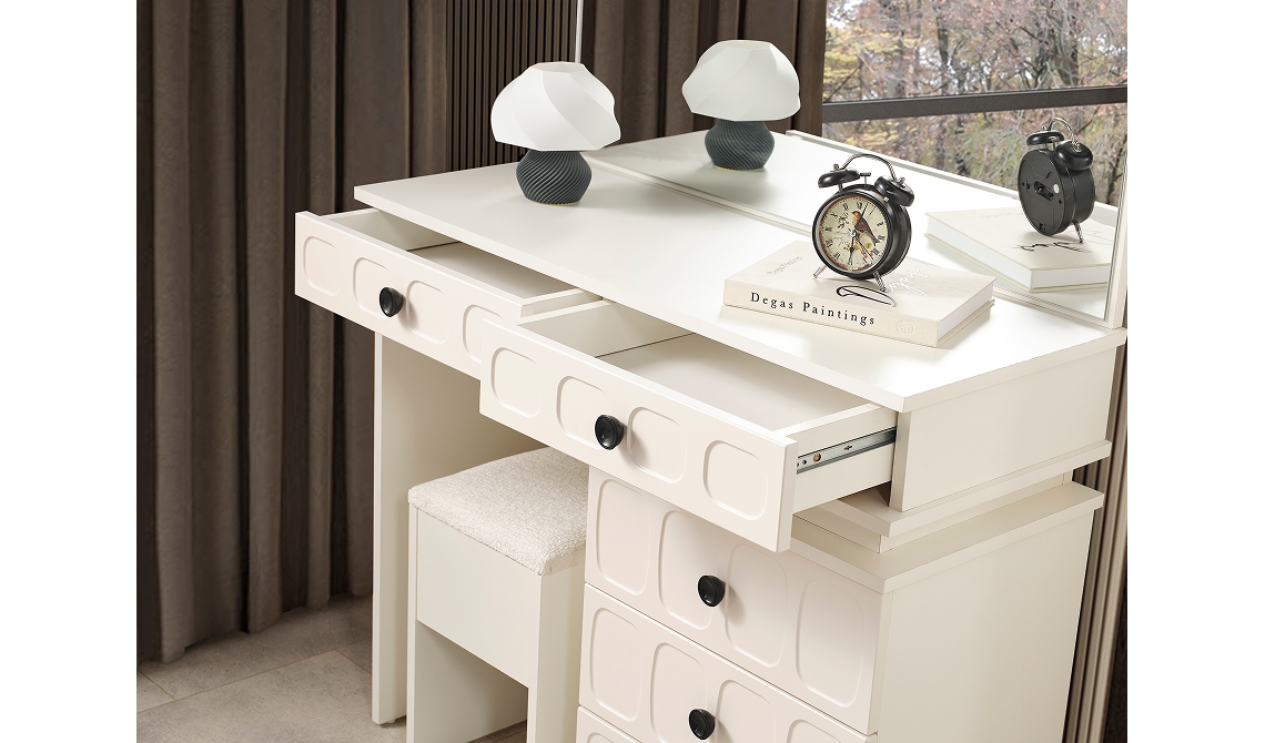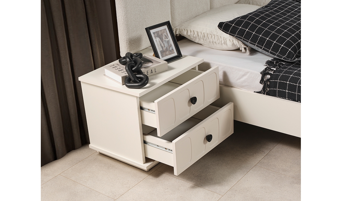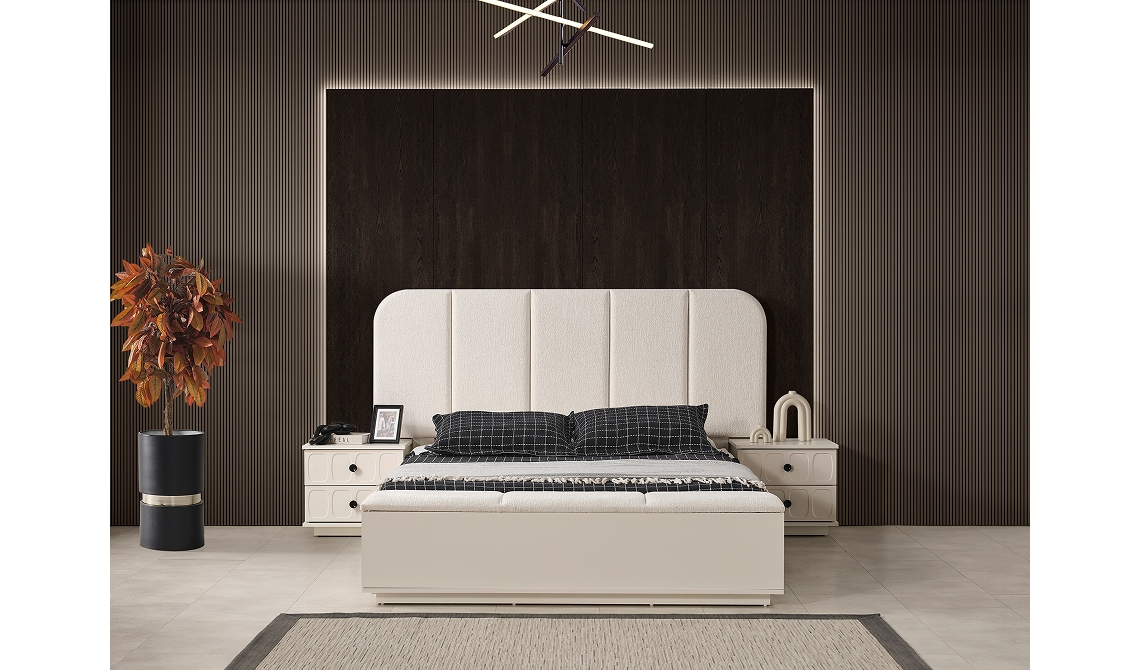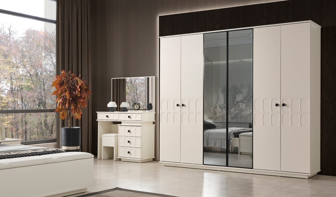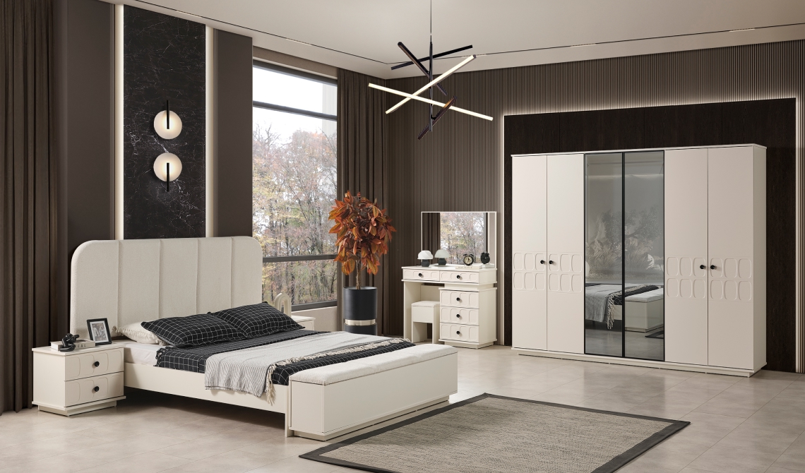 Petek Yatak Odası, modern ve uyumlu tasarımıyla ferah bir yaşam alanı sunar. Fonksiyonel depolama çözümleriyle estetik ve konforu bir arada sağlar.